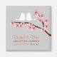 De jolies fleurs de cerisiers roses et une paire de lovebirds sur un arrière - plan gris ornent cette suite de faire-part de mariage simple et classe. Ce design est parfait pour les mariages de jardin à thème asiatique.