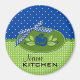 Polka Dot Roses Refrigerator Magnet, Blue-est un design d'art graphique. La partie supérieure de l'arrière - plan est en pois bleu et blanc. La moitié inférieure est pois verte et blanche. Un mince ruban vert ricrac divise les deux motifs. Au centre se trouve une forme ovale verte tenant un rose bleu avec des feuilles verts. Un arc bleu et blanc à damiers embellit l'ovale. J'ai placé deux zones de texte sur l'aimant pour que vous personnalisiez. Remplacez le mot NOM par le nom d'une personne. Le deuxième mot dit Kitchen. Les deux zones de texte peuvent être modifiées ou supprimées si vous le souhaitez. Ce design rose pois est disponible en plusieurs couleurs assorties.