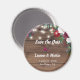 Des feux de fées ou de cordes pendent sur un arrière - plan de faux planches de bois. Les bouquets de roses en blanc, rouge, rose et vert faits dans un effet aquarelle font une bordure frappante sur cet aimant que vous pouvez customiser pour une sauvegarde la faveur de la date ou le changement pour une faveur de mariage. Disponible avec des produits correspondants.