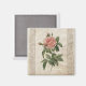 Aimant rétro personnalisable avec une illustration botanique vintage de roses roses avec cadre embelli à la française antique et texture de papier vieilli écrasé.