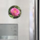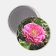 Ce bel aimant présente une photo détaillée d'une fleur rose de Zinnia. La photographie a été prise en utilisant la macro photographie pour un résultat extrêmement détaillé.