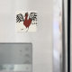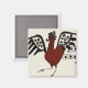 Aimant avec un dessin d'un coq rouge.