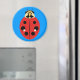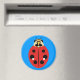 Cet aimant présente un joli graphisme rouge de coccinelle contre un arrière - plan bleu.