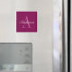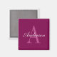 Aimant Rouge Magenta Élégant, Nom & Monogramme Rose & Bla