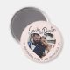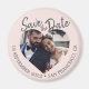 Faire-part de photo rose moderne avec aimant à date de sauvegarde avec une zone de photo en forme de cœur centrée avec des tons roses doux et un texte manuscrit. Cette conception met en valeur votre photo de fiançailles tout en partageant clairement la date et le lieu du mariage, ce qui la rend idéale pour les couples qui souhaitent un faire-part personnel et visuellement chaleureux. Parfait pour les mariages, les célébrations de fiançailles, les renouvellements de vœux ou les événements de destination où une annonce anticipée mémorable est importante. Personnalisez facilement avec vos détails.