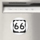 Cette conception comprend le bouclier de la route 66 (également connu sous le nom de Will Rogers Highway, la rue principale de l'Amérique ou encore Mother Road), qui était l'une des routes originales du réseau routier américain. La route 66 a été établie le 11 novembre 1926, et des panneaux routiers ont été érigés l'année suivante. Elle est devenue l'une des routes les plus célèbres des Etats-Unis, souvent référencée dans la culture populaire.