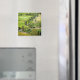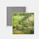 Aimant frigidaire souvenir carré d'un zigzag sinueux, cyprès bordée route à travers les champs verts de Monticchiello, Toscane en Italie avec le texte : 'Toscane'. Un grand souvenir !