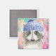 Roxy reste rarement assez longtemps pour un portrait. La plupart des nuits, on la retrouve au pillage des poubelles dans le quartier Ballard de Seattle. Raton laveur numérique en tricot bleu portrait sur arrière - plan multicolore