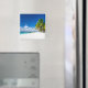Aimant de sable blanc. Eau turquoise. Souvenirs de vacances sur une plage caribéenne. Adoptez une atmosphère zen et tropicale à la maison. Un souvenir d'une plage sous les tropiques. Donnez-vous un aimant, c'est le cadeau idéal.