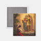 Cet aimant présente une peinture classique de Saint Jeanne d'Arc en face de Saint Michel et Sainte Catherine par Anton Stilke de la fin des années 1800.