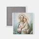Belle image vintage de saint Joseph tenant l'enfant Jésus. Une croix est entre ses mains et des lis de chaque côté.