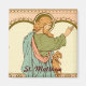 Si vous choisissez un aimant rond, vous devrez ajuster le placement du nom du saint, le courber, ou l'éliminer complètement en le supprimant. + Crédit d'image (RLS 10) : Image antique en chromolithographie avec des accents dorés de saint Matthieu l'apôtre des saints aux lettres rouges : Etre une série de biographies des saints pour lesquels Collecte, épître et évangiles appropriés sont désignés dans le Livre de la prière commune. Imprimé par E. Kaufmann, Lahr, Baden, Allemagne, pour la Society for Advancement Christian Knowledge / S.P.C.K. (Londres, 1911), p. 58. De la bibliothèque privée du concepteur. + Fête : 21 septembre + Le texte est en rouge foncé (#460000) qui correspond au contour de la figure.
