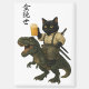 Aimant Samurai Cat with Beer & T-Rex | Retro Japanese Art