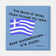 Drapeau grec qui flotte avec les mots "Le sang de Hellas coule dans mes veines. Et parfois... son ouzo." Amusant pour rire le jour d'Oxi ou à tout moment.