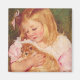 Sara Holding a Cat (1908) de l'impressionniste américaine Mary Cassatt. Un tableau d'art original représente le portrait d'une petite fille vêtue d'une robe rose et portant un chaton. Utilisez les outils de conception pour ajouter du texte personnalisé ou personnaliser l'image.