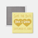 Cet aimant de réfrigérateur présente une paire de cœurs en or massif surmontés des noms des mariés avec les mots "Sauver la date" au-dessus et la date en dessous. Peut être personnalisé pour une fête de fiançailles, une douche de mariée, un dîner de répétition, un mariage, un anniversaire ou une faveur de fête de la Saint-Valentin ou de save-the-date. Les cœurs en or sont particulièrement appropriés pour les célébrations du 50e anniversaire de mariage.