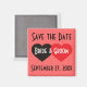 Cet aimant de réfrigérateur Save the Date présente des coeurs noirs et rouges superposés par le texte modèle "marié et marié". Le texte modèle "enregistrer la date" apparaît au-dessus du coeur, et le texte modèle de la date apparaît ci-dessous. Le design peut être customisé pour une fête de fiançailles, une douche nuptiale, un dîner de répétition, un mariage, un anniversaire ou la fête de la Saint-Valentin, sauf la date ou la faveur de la fête.