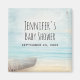 Baby shower ou anniversaire enregistrer l'aimant de date avec une belle image rustique. Couleurs subtiles de bleu clair, marron sablonneux et blanc doux. Une scène de plage avec un bateau sur le rivage avec un filet de pêche accroché à côté. Un élégant look défraîchi.
