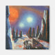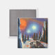 Illustration vintage futuriste de planètes de science-fiction et image de l'espace. Un design classique de bande dessinée rétro des années 50 mettant en vedette des aliens de science-fiction regardant plusieurs soleils sur une planète avec de hautes formations géologiques rocheuses.