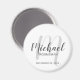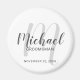 Ajoutez une touche personnelle à votre mariage grâce à un aimant personnalisé pour les groomsmen. Cet aimant présente le nom des groomsmen personnalisés en gris style de police de script moderne et monogramme en gris clair style de police de script moderne comme arrière - plan avec titre et date mariage en gris moderne style de police sans serif sur arrière - plan blanc. Aussi parfait pour le meilleur homme, père de la mariée et plus.