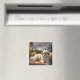 Une scène de vacances pleine de charme avec un chien assis paisiblement à côté d'une fenêtre, entouré de lumières de Noël éclatantes. Ce design cosy et festif reflète l'esprit de la saison, parfait pour ajouter chaleur et charme à tout espace. Idéal pour les amoureux de les chiens et les amateurs de décoration de vacances.