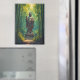 Baignée d'une lumière dorée et éthérée, cette oeuvre d'art vous invitation dans une paisible forêt de bambous japonais. Des tiges verdoyantes et verdoyantes forment une cathédrale naturelle, leurs feuilles rouillent doucement dans la brise. Au coeur de cette verdure sereine, une magnifique statue de Bouddha se dresse comme un phare de paix et de sagesse ancienne. Un sentier sinueux de pierre aux applis de soleil conduit vers la statue, demandant au spectateur un voyage de contemplation tranquille. La scène générale est d'un calme profond, où le monde sacré et le monde naturel se rencontrent en parfaite harmonie.