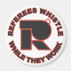 Les arbitres sifflent vraiment pendant qu'ils travaillent. Logo de la lettre R de l'arbitre en forme de sifflet. Customisez avec un nom et/ou un numéro ou un arrière - plan de couleur différente, si vous le souhaitez, en cliquant sur "Customisez ce dessin".