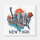 Magnifique aile en skyline de New York qui présente l'horizon et la silhouette de la ville américaine avec des gratte-ciel et des bâtiments. Grand souvenir de voyage et cadeau touristique.