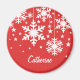 Snowflakes et Stars Magnet avec une cascade d'étoiles et des flocons de neige suspendus en rouge. Cet aimant de vacances chic et sophistiqué ajoutera une touche d'ambiance hivernale partout où vous le collerez ! Facile à customiser, ajoutez simplement le texte personnalisé de votre choix. Cliquez sur le bouton "Customiser" pour trouver d'autres options de personnalisation.