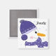 Un mignon bonhomme de neige avec un gros nez de carotte et un petit coeur rose sur la joue. Foulard bleu, muffes casquettes et oreilles avec des petits flocons qui dansent sur.