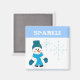 Un joyeux petit bonhomme de neige habillé d'accessoires bleus avec des flocons de neige qui dansent autour de lui. Un mignon nez de carotte et des petites joues de coeur rose.