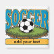 Un Soccer se tient prêt sur l'herbe avec un gros texte bleu SOCCER décrit en jaune! Ajoutez votre texte personnalisé sous cette conception de Soccer dans l'espace fourni. Parfait pour tout joueur de football ou fan de Soccer, ajoutez des noms, des noms d'école ou des messages sportifs ! Chemises de Football personnalisables et cadeaux de Football !