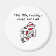 Un singe-chaussette se tient sur un ballon de football et un texte de style enfant dit "Ce petit singe aime le football !" sur des T-shirts, des cartes, des tasses, des mousepads et autres équipements de football design !