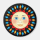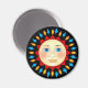 Un soleil céleste vif rayonne sur cet aimant. Les couleurs de l'arrière - plan noir sont le jaune, le rouge, le bleu et l'orange.