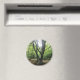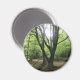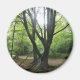 Ce bel aimant présente une photo prise dans un bois caduque britannique. Au premier plan se trouve un grand arbre avec beaucoup de branches tordues. Le soleil brille à travers la masse de branches créant un merveilleux contraste entre l'obscurité du grand arbre et la lumière du soleil et les arbres verts de l'arrière - plan.