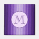 Conception élégante et sophistiquée de rayures élégantes et maigres dans des teintes de violet dégradant des côtés du violet profond à travers le violet clair au centre vers le violet foncé. Chaque bande est également faite de bandes plus petites. Changez la lettre à votre monogramme désiré pour personnaliser ce motif violet punchy. Le violet est une couleur de pourcentage ou de statut, de richesse, de succès, de confiance, d'indépendance, de sagesse et d'équilibre, de magie et de mystique. C'était la première couleur synthétique, créée en 1859. Le violet de cobalt et le violet de manganèse se retrouvent dans les palettes de peinture de certains des impressionnistes français. Bandes mauves et brillantes de Sylvia Rose Originals, Canada. Visitez-moi sur Twitter @Sylvia_FineArt. Bonne journée !