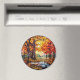 Scène de forêt automnale en faux vitrail mignon, souvenir de voyage personnalisable. Idéal pour Noël et souvenir de vacances en famille, ou souvenir de lune de miel.