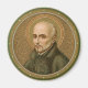Le noble et soldat basque espagnol devenu prêtre et théologien, saint Ignace Loyola (1491-1556) fut fondateur et premier supérieur général de la Société de Jésus (les Jésuites). Dans ce rond-point, St. Ignatius est habillé de style jésuite. Il porte une simple chaussette noire, probablement emballée et filmée à la taille non boutonnée sur le devant, et une cape noire collée. Sur sa poitrine, le Saint porte un Christogramme, l'emblème officiel des Jésuites : le monogramme IHS avec le H surmonté d'une croix au-dessus de trois clous et entouré d'un Soleil. IHS (ou iota-eta-sigma) représente les trois premières lettres du nom de Jésus en grec ; les trois clous, pour la Passion ; et le Soleil, pour le Fils de Dieu. Liés par un voeu d'obéissance spéciale au Pape, les Jésuites entreprirent un travail missionnaire et une éducation à l'orthodoxie sous les directives papales, jouant un rôle particulièrement important dans la Contre-Réforme. La devise des Jésuites en latin, inventée par leur fondateur, est "Ad maiorem Dei gloriam (AMDG abrégé)" et signifie "Pour la plus grande gloire de Dieu". + Fête : 31 juillet + Crédit photo (BK 050) : Image antique de St. Ignatius de Loyola, S.J., publiée initialement dans la chromolithographie par B. Kühlen, Mönchengladbach, Allemagne, séries jésuites non numérotées, fin 19ème siècle, de la collection privée du designer de l'éternité religieuse.