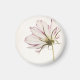 Mon image, "Stand in the Light" sur un aimant rond. Une fleur rose avec des textures et des tons numériques ajoutés.