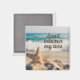Aimant avec la photo d'une étoile de mer sur une plage de sable à l'océan. Le texte dit : "Sable entre mes orteils."