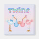 Cadeaux de Baby shower unique pour la nouvelle maman ou maman à être. Bébé Onsies, invitations, cartes postales, porte-clés, magnets, faveurs de boutons, mugs de gardiens et plus encore. Chaque élément peut être personnalisé avec des noms et des dates. Ce design est pour une fille et un garçon jumeau et a des couleurs rose et bleu.