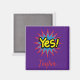 Bouton design de street art tendance, cet article présente "Yes" en jaune en noir avec un symbole étoile rouge et bleu sur un arrière - plan violet. Votre nom est écrit en caractères rouges amusants. Commandez les vôtres dès aujourd'hui ! Clipart : AnneIllustration https://www.etsy.com/shop/AnneIllustration