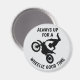 Ajoutez une touche d'aventure à votre réfrigérateur ou à votre surface magnétique avec cet aimant amusant. Doté d'un vélo cascadeur mi-tireur et de l'expression ludique "Toujours prêt pour un bon temps de roue", cet aimant est parfait pour les amateurs de cyclisme, les adeptes de l'adrénaline, ou toute personne qui aime un bon jeu de mots. C’est une excellente façon de mettre en valeur votre amour pour le vélo avec un brin d’humour.