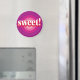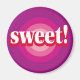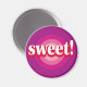 Un œil de bœuf rose et violet avec le mot « Sucré » au centre est le design de cet aimant.