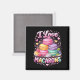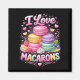 A colorful, whimsical illustration of stacked French macarons surrounded by fruit and hearts, celebrating joy, romance, and irresistible desserts.