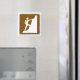 Symbole de l'escalade de roche, comme celui qui voit le long de l'autoroute ou dans les parcs nationaux. Magnet présente une silhouette blanche de grimpeur et de rocher sur arrière - plan brun.