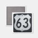 Photographie d'un panneau routier de la US Highway 63 recadré et centré sur l'aimant. Image copyright 2013 par Margaret E. Cmelik.
