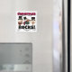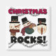 Trois bonhomme de neige, notes musicales et texte qui lit les rochers de Noël sur les fêtes de Noël bonhomme de neige design sweatshirts, sweat - shirts à capuche, tasses, cartes, autocollants, t-shirts, sacs fourre-tout, et bien plus encore.