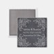 Tableau noir avec motif de flourish vintage mariage Save the Date aimant avec un motif blanc vintage dans les coins sur fond de tableau noir gris charbon ou tableau noir et votre texte. Une approche moderne et contemporaine d'un thème vintage. Ce modèle de design rétro fait partie d'un ensemble de mariage, est entièrement personnalisable et peut être personnalisé.