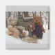 Un couple d'ours en peluche assis à côté d'un Inuksuk